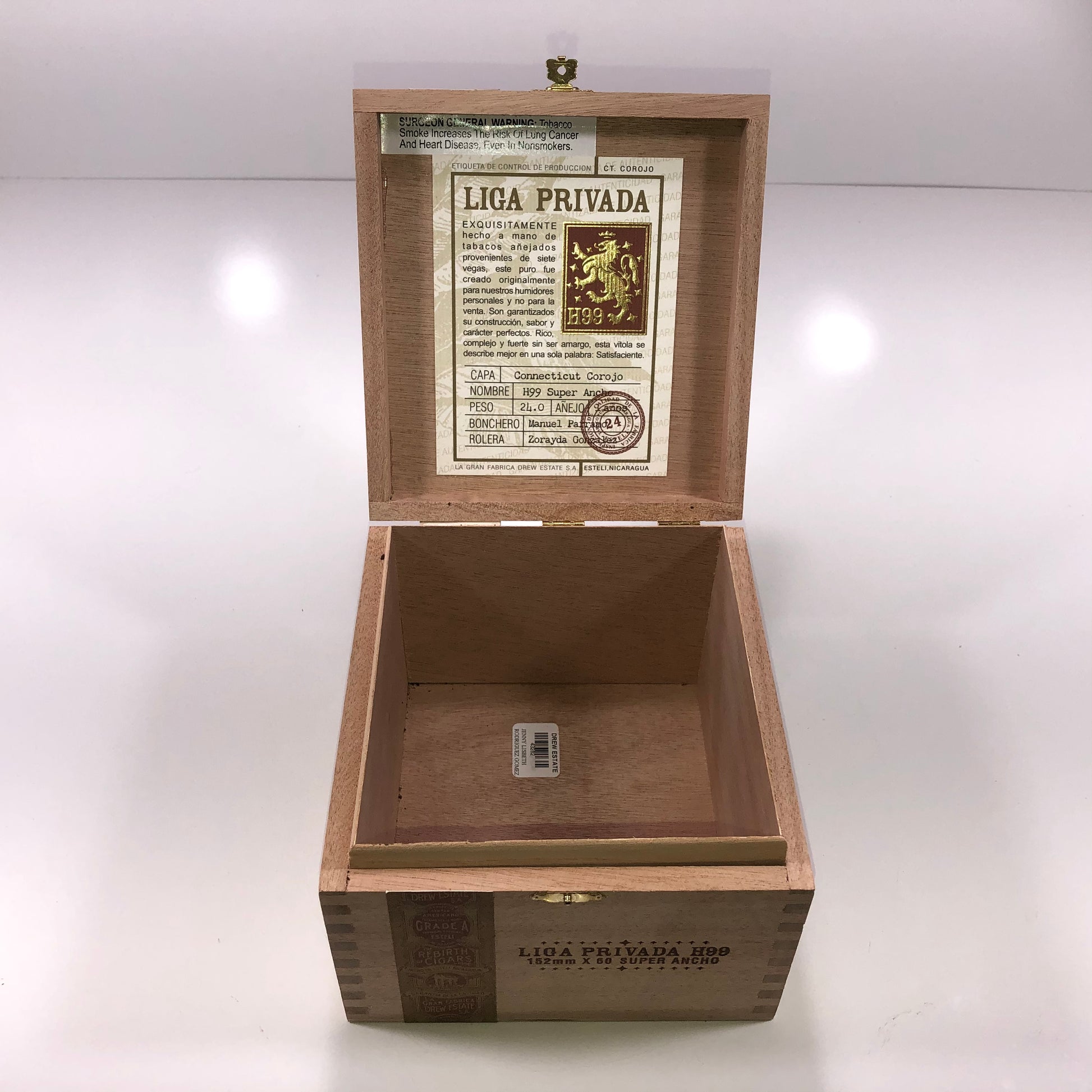 Liga Privada H99 Ancho Empty Wooden Cigar Box 6.5x7x4.5