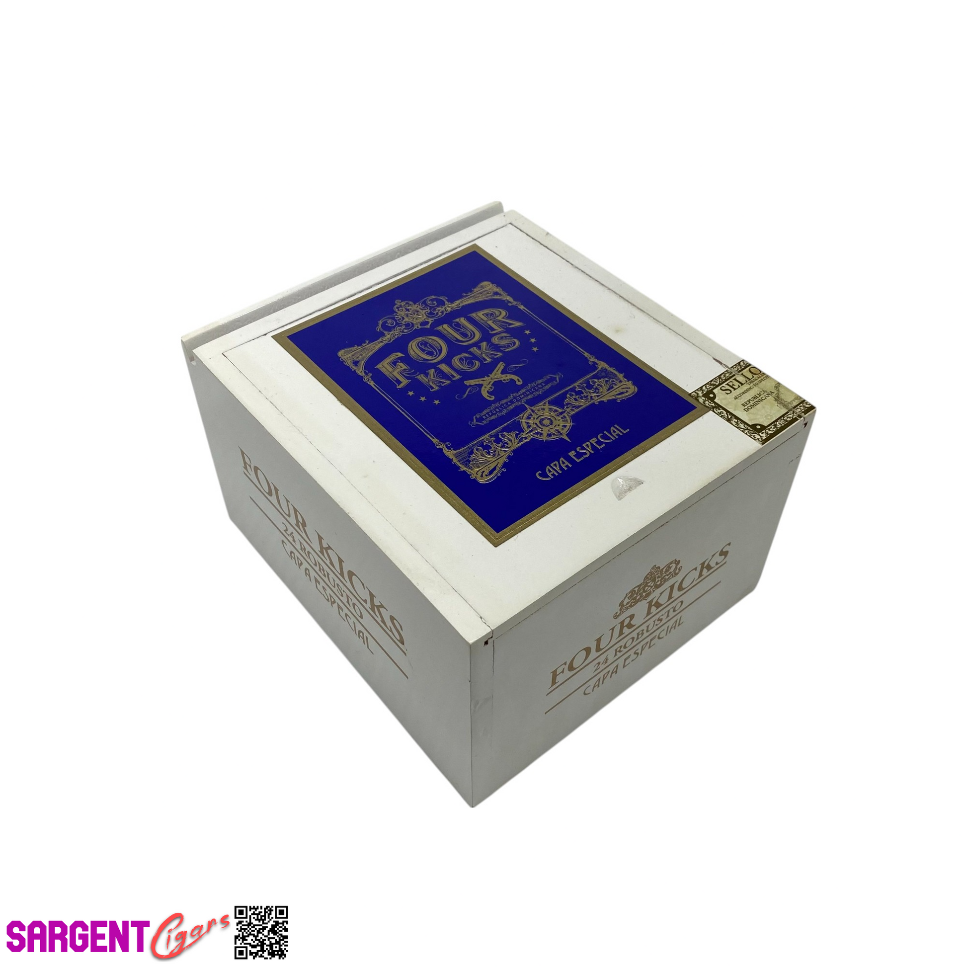 Four Kicks Robusto Empty Wooden Cigar Box 5.25x6x3.5