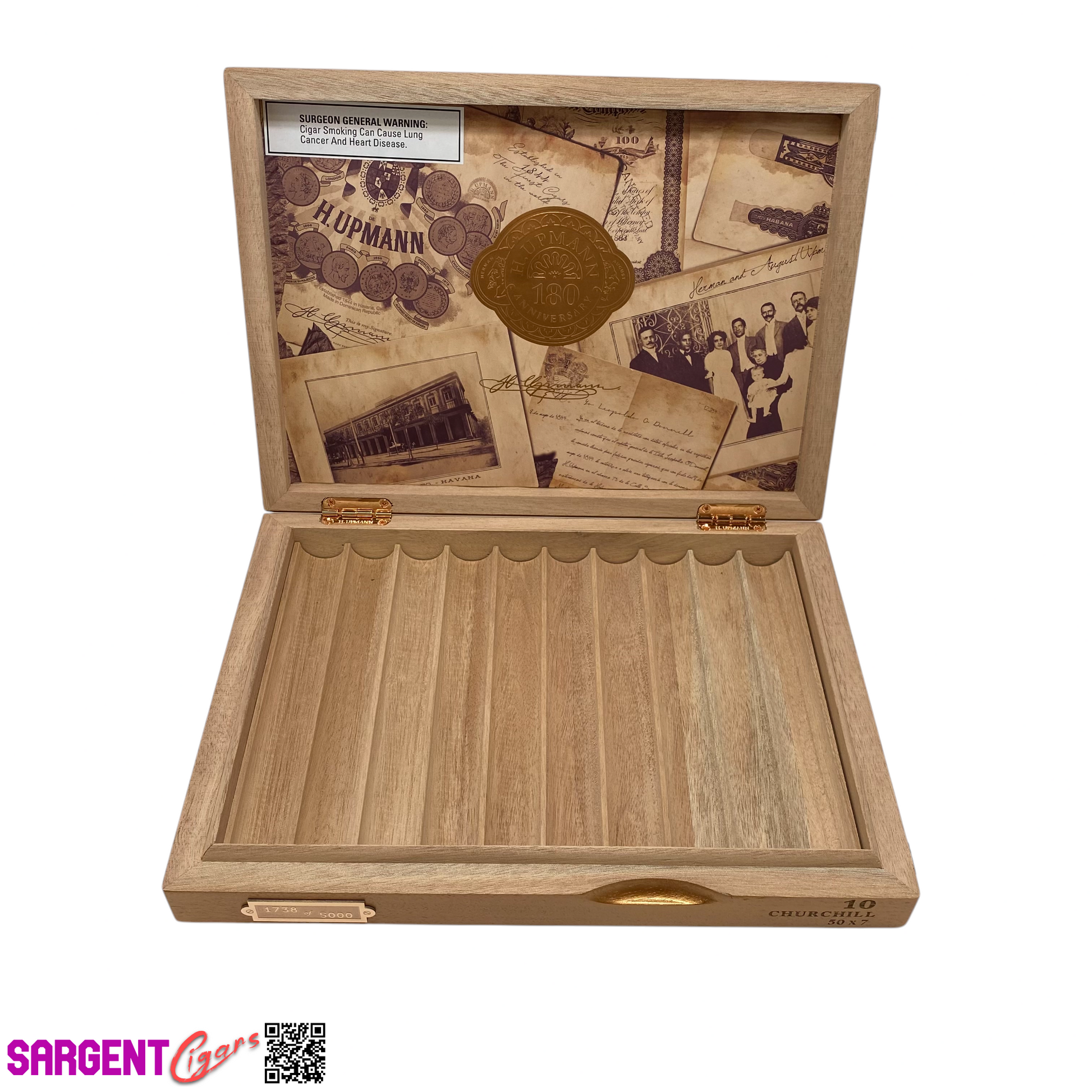 H Upmann 180th Anniversary Churchill Empty Wooden Cigar Box 11.25x8.5x1.5