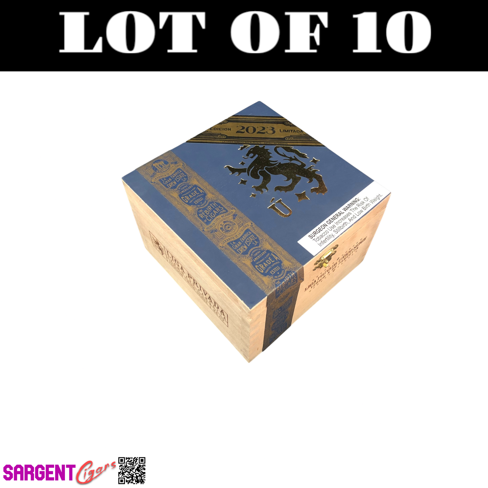 This is a lot of 10 Liga Privada Pancetta 2023 Empty Wooden Cigar Boxes. The 10 boxes are all the same as the box in the photos. They may have small blemishes/scratches and/or small dents or chips, which I try to capture in the pictures, but otherwise they are fully functional.